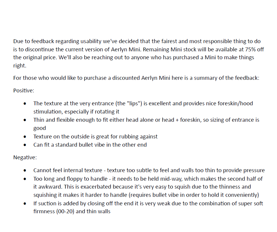 Aerlyn Mini is being discontinued for usability reasons. See third image for further information.